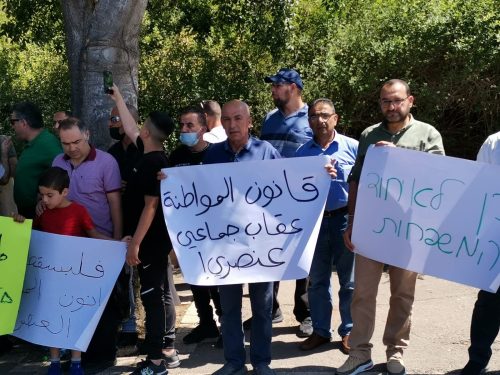 وتحت عنوان “لا لقانون المواطنة نعم لجمع شمل العائلات” جرت اليوم الوقفة شارك فيها المتظاهرون بأغلبيتهم كانوا من أبناء العائلات المتضررة من هذا القانون، ورفع المشاركون يافطات تندد بهذا القانون العنصري ومطالبين بإلغائه.