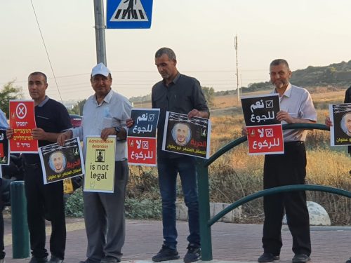 نظّمت لجنة الحريات المنبثقة عن لجنة المتابعة مساء اليوم الاربعاء، وقفة إسناد للأسير الغضنفر أبو عطوان، المضرب عن الطعام منذ 57 يومًا رفضًا لاعتقاله الإداري، وذلك أمام مستشفى “كابلان” بمدينة “روحوفوت” جنوب تل أبيب، حيث يرقد بحالة صحية صعبة.