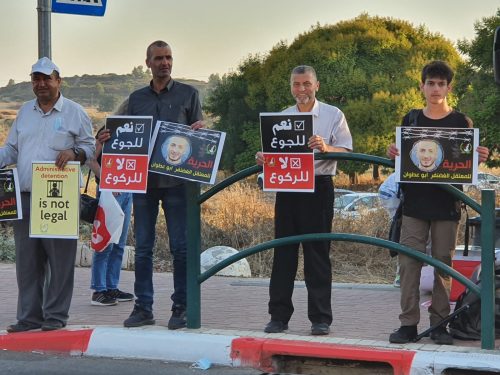 وأضاف اغبارية: “هذه السياسات الإسرائيلية الظالمة والعنصرية تؤكد أننا نعيش في ظل مؤسسة عسكرية تمارس قوتها وجبروتها على أبناء شعبنا، اليوم بعد التظاهرة قمنا بزيارة الأخ الأسير أبو عطوان ومعنوياته والحمد لله عالية رغم آثار الاضراب على صحته، لكنه صامد، ونعتقد أن هذه الوسائل بالإضراب عن الطعام قد اثبتت جدواها عدة مرات جراء تمسك الأسرى بحقهم والمطالبة بحريتهم”.