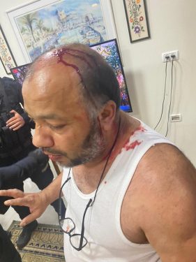 لم أستطع أن أبقى في البيت، يتابع عوض محاميد، ويروي: “نزلت وأولادي لنرى عن قرب ما حدث مع جيراننا ولنقدم لهم المساعدة وكانوا يشكون لنا ما حدث معهم متذمرين من هذه الأفعال التي لأول مرة تحدث معهم في هذا الحي المختلط بين العرب واليهود، كما يقولون، وبعد أن وقفنا معهم وتفحصنا الأضرار سويًا عدنا إلى البيت، وما هي إلا لحظات قليلة وإذ بابنتي في الطابق الأول تصرخ وتنادي علينا.. نزلت أنا وأولادي عبر المصعد الكهربائي إلى الطابق الأول، وما أن فتح المصعد أبوابه وإذا بقوات كبيرة من الشرطة ودون مقدمات تنهال علينا بالضرب المبرح بالعصي وترشنا بالغاز المدمع والحارق، وفي هذه الأثناء حاولت أن افهم منهم ماذا يريدون منا بالضبط لكنهم استمروا في الاعتداء علينا حتى صارت رؤوسنا وأجسادنا تنزف من الدماء”.