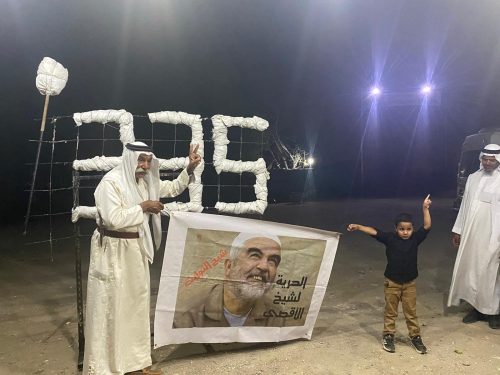 مما يذكر أن اللجنة الشعبية في قرية العراقيب تنظم الفعالية للمرة الثانية عشر منذ دخل شيخ الأقصى إلى السجن بتاريخ 16/8/2020، حيث اعتادت على إيقاد شعلة الحرية في السادس عشر من كل شهر، تضامنًا مع الشيخ رائد وعرفانًا بدوره في نصرة قضايا شعبه وفي مقدمتها قضية النقب ولا سيّما قرية العراقيب التي تعاني الهدم والملاحقات الإسرائيلية.