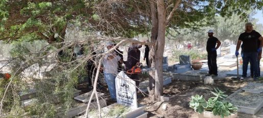 بمبادرة من شباب مساجد رهط في النقب، نُظم اليوم السبت، معسكر عمل تطوعي شمل حملة تنظيف وصيانة مقبرة أبو منصور بالمدينة.