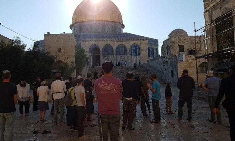 واقتحم أكثر من ألف مستوطن متطرف منذ صباح اليوم المسجد الأقصى من باب المغاربة، وأدوا طقوسًا وصلوات تلمودية، وسط حراسة مشددة من شرطة الاحتلال.