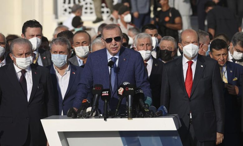 استبعد الرئيس التركي رجب طيب أردوغان إحراز أي تقدم في المفاوضات في قبرص “دون القبول بوجود دولتين وشعبين مختلفين ومستقلين”، مؤكدا إصرار بلاده على “حماية حقوقها وحقوق القبارصة الأتراك في شرق المتوسط”.