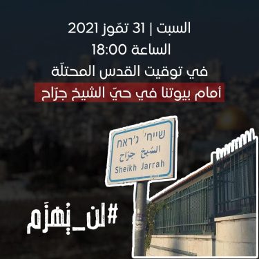 وأضافت: “لذلك، فإن وجودنا في الشارع ووقوفنا إلى جانب عائلاتنا في حيّ الشيخ جرّاح هو الضمان الوحيد للتصدّي للتهجير”.