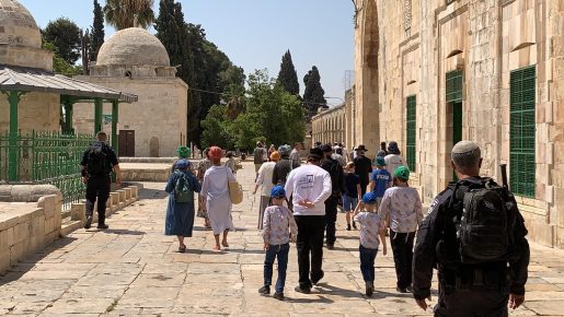 وتمنع شرطة الاحتلال المصلين والحراس من الاقتراب من المستوطنين أثناء اقتحام الأقصى، كما تحتجز هويات المصلين الوافدين للمسجد عند البوابات الخارجية.