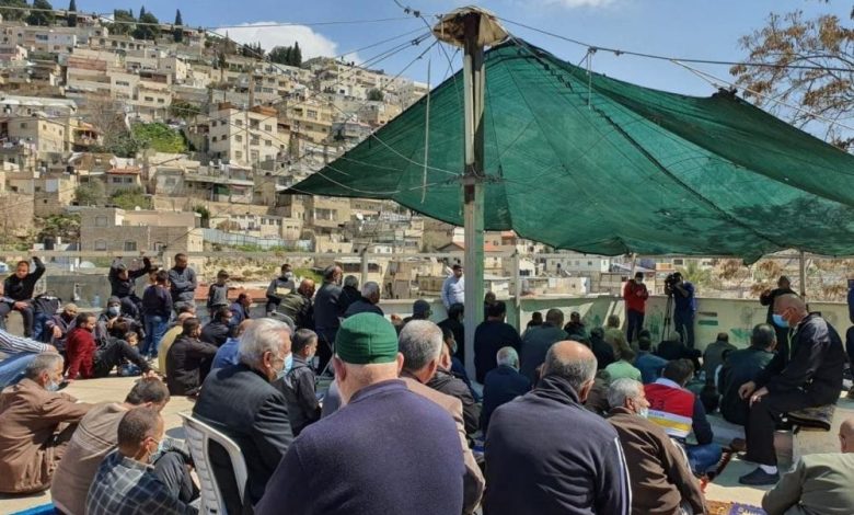 أهالي سلوان يؤدون الجمعة في خيمة بطن الهوى رفضًا لقرارات الهدم