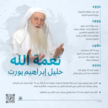 نعمة الله خليل إبراهيم يورت، الذي توفي عن عمر يناهز 90 عامًا بسبب قصور في القلب خلال تلقيه العلاج في أحد مستشفيات إسطنبول، ساهم من خلال أنشطته الدعوية والإرشادية في اعتناق آلاف الأشخاص للدين الإسلامي في أوروبا واليابان.