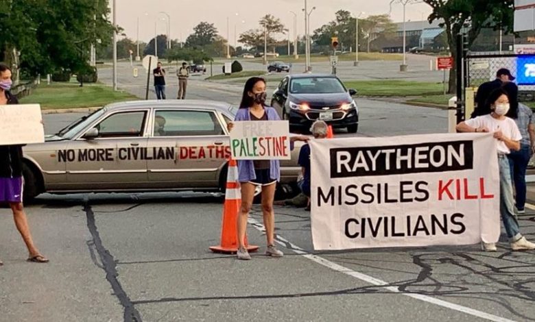 أغلق متضامنون أميركيون مع الحق الفلسطيني، مداخل شركة “رايثيون” المصنعة للصواريخ الموجهة و”القبة الحديدية”.