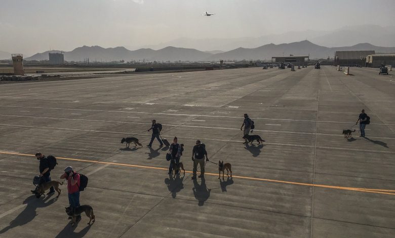 تداول ناشطون وصحفيون صورا لإجلاء القوات الأميركية كلابا كانت تعمل في القواعد العسكرية بأفغانستان، حيث خصصت لها مقاعد في الطائرات، في حين كانت حشود من الأفغان تحاول الصعود للطائرات والتشبث بها، مما تسبب في سقوط بعضهم ومقتلهم.