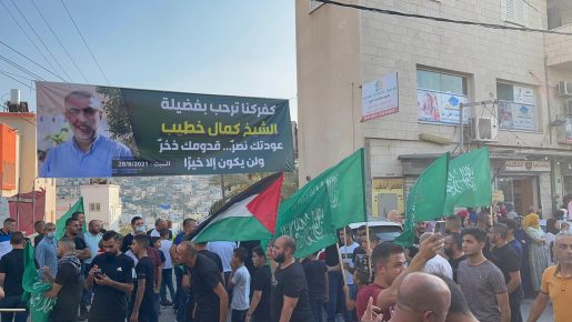 استقبلت حشود غفيرة من أهالي الداخل الفلسطيني، الشيخ كمال خطيب، رئيس لجنة الحريات المنبثقة عن لجنة المتابعة العليا في الداخل الفلسطيني، لدى وصوله إلى بيته في كفركنا عصر اليوم السبت.