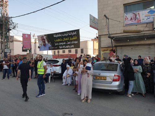 وتجمع المئات من أهالي بلدة كفركنا ومن بلدات مختلفة من الداخل الفلسطيني عند مدخل كفركنا الشمالي، ورافقوا الشيخ كمال خطيب في مسيرة سيارات كبيرة تزينها الأعلام والشعارات حتى وصوله إلى بيته بجانب مسجد عمر بن الخطاب ليلتحموا بعدها مع حشود أخرى كان بانتظار الشيخ بجانب بيته.
