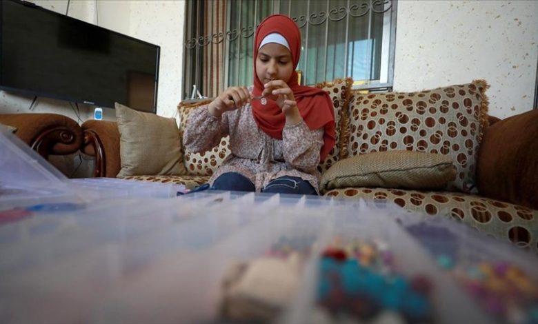 استثمرت طفلة فلسطينية واسمها رزان الناصر (13 عاما)، الحجر المنزلي بفعل جائحة كورونا، لتطوير موهبتها وشغفها بالخرز، ليصبح لديها مشروعها الخاص.