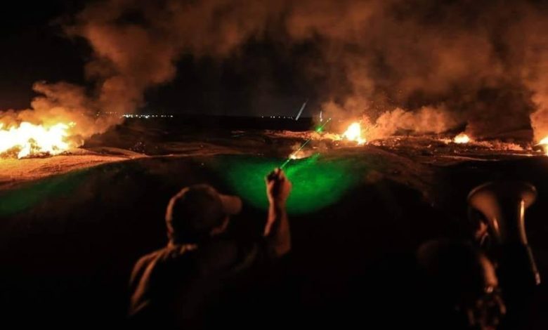 وكان شبان فلسطينيون بدأوا مساء اليوم بفعاليات “إرباك ليلي” للاحتلال الإسرائيلي ومستوطنيه شرقي محافظات قطاع غزة الخمس لليوم السادس على التوالي، رفضًا لاستمرار الحصار وللضغط من أجل إنهائه.