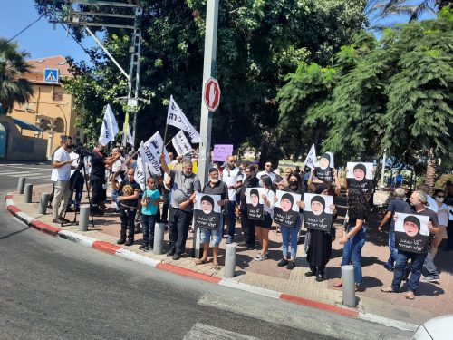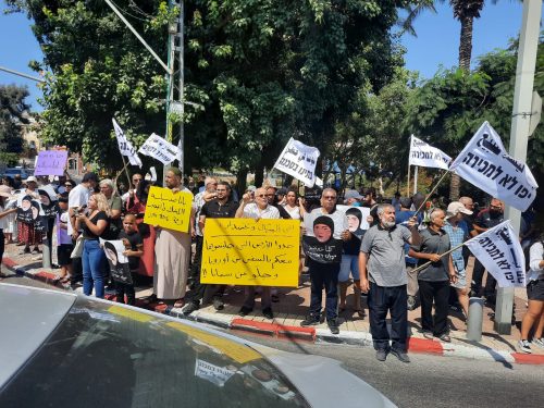 ورفع المتظاهرون لافتات حملت صورا لصاحبة المنزل المهدد بالإخلاء، بالإضافة إلى شعارات رافضة لسياسة التهجير تحت شعار “يافا ضد سياسة الإخلاء والتهجير”.