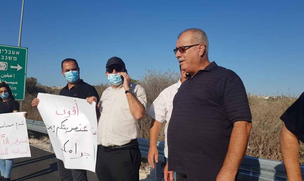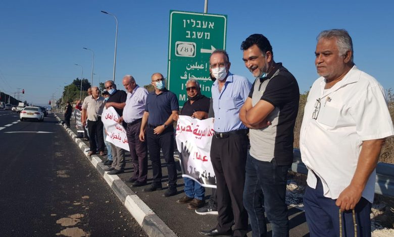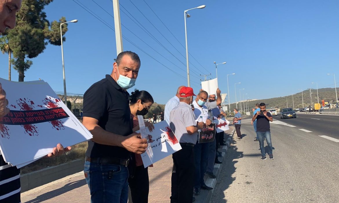 العشرات يتظاهرون ضد العنف والجريمة على مفرق الناعمة- شفاعمرو
