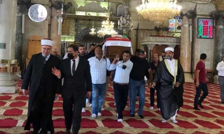 وشارك مسؤولون من دائرة الأوقاف الإسلامية بالقدس وشخصيات أردنية وعدد من المواطنين في الصلاة على الشهيد، قبل تشييعه.