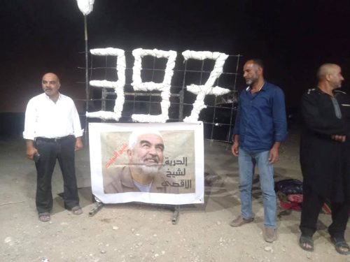 أوقدت في قرية العراقيب مسلوبة الاعتراف في منطقة النقب، مساء الجمعة، للمرة الثالثة عشرة، الشعلة “397” وترمز إلى عدد الأيام التي مضت، على الشيخ رائد صلاح في السجون الإسرائيلية.