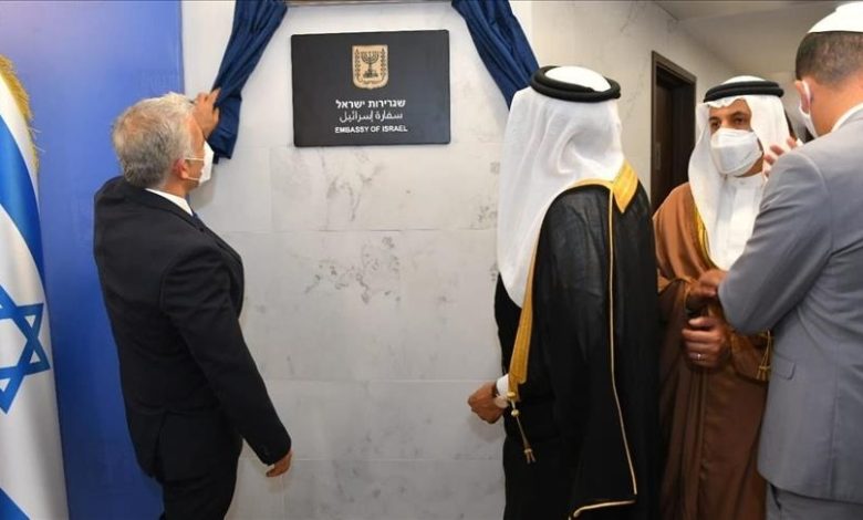 والخميس، افتتحت إسرائيل، سفارتها في العاصمة البحرين المنامة، رسميًا، بحضور وزير خارجية تل أبيب، يائير لابيد، ووزير الخارجية البحريني، عبد اللطيف الزياني.