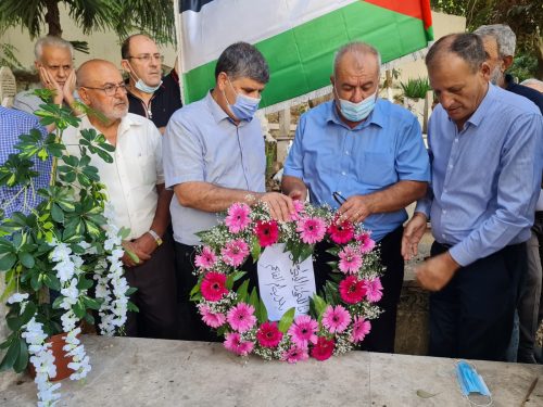وانتقل الوفد بعدها إلى ضريحي الشهيدين في مقبرة الشهداء لوضع أكاليل الزهور وقراءة الفاتحة على روحيهما.