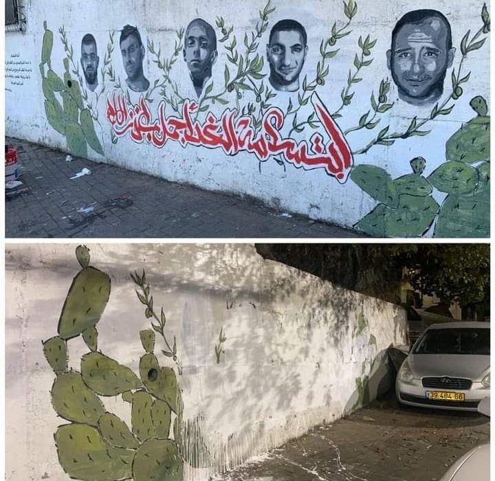 ذكر شهود عيان من مدينة أم الفحم، أن مجموعة من المستعربين، قاموا، ليلة السبت-الاحد، بمحو جدارية مرسومة لشهداء البلدة، وذلك بعد حملة إسرائيلية تطالب الشرطة بالتدخل لمحوها.