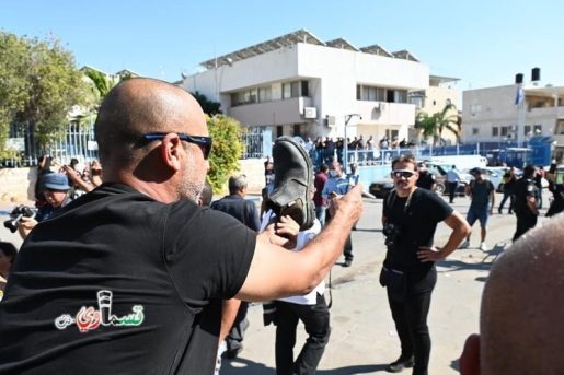 وقد رفع عدد من المتظاهرون الأحذية بوجه بن غفير ونعتوه بـ “الفاشي والداعم للإرهاب”. وقالوا: “بن غفير انسان عنصري من الدرجة الأولى ويكره العرب، وزيارته هذه ما هي الا استفزازية وليس من أجل دعم رجال الشرطة كما ذكر”.