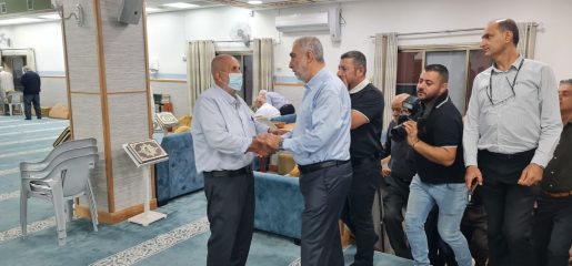 صلى الشيخ كمال خطيب، مساء الأربعاء، المغرب والعشاء، في مسجد “عمر بن الخطاب” وسط احتفاء واستقبال كبير من روّاد المسجد والأهالي.