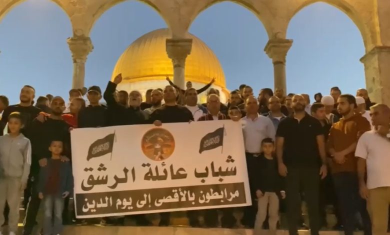 على صلة، واصلت عائلات مقدسية فعاليات “رباط الحمائل” بالمسجد الأقصى بمدينة القدس المحتلة، تلبية للفكرة التي أطلقها الشيخ رائد صلاح عام 2007.