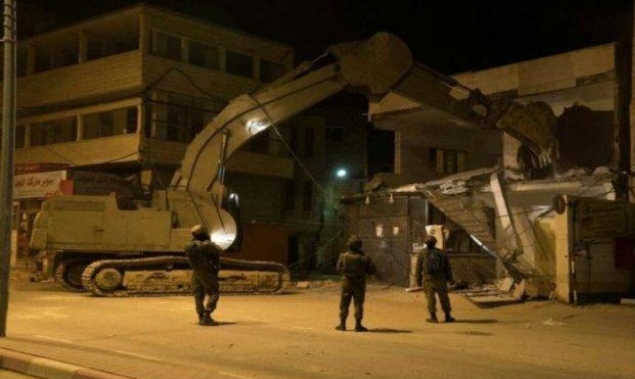 وأفاد شهود عيان بأن قوات الاحتلال شرعت بهدم نحو 30 منشأة بعد إغلاق المنطقة، منها محل للخضار يعود لعائلة جابر، ومحطة وقود ومغسلة سيارات، الأمر الذي تسبب بأزمة مرورية خانقة.