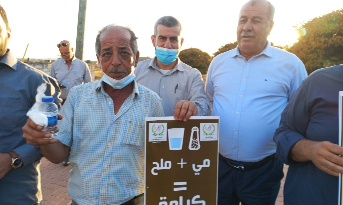 رفع المشاركون في الوقفة، لافتات تحذر من استمرار الانتهاكات الإسرائيلية بحق الأسرى. من بين الشعارات: مي+ملح= كرامة، كرامة حرية حقوق إنسانية، إلى جانب شعارات بالعبرية والإنجليزية تطالب بالحرية للأسرى وتندد بسياسة الاعتقالات الإدارية.