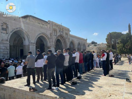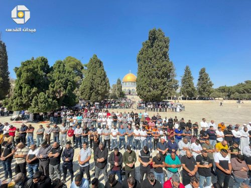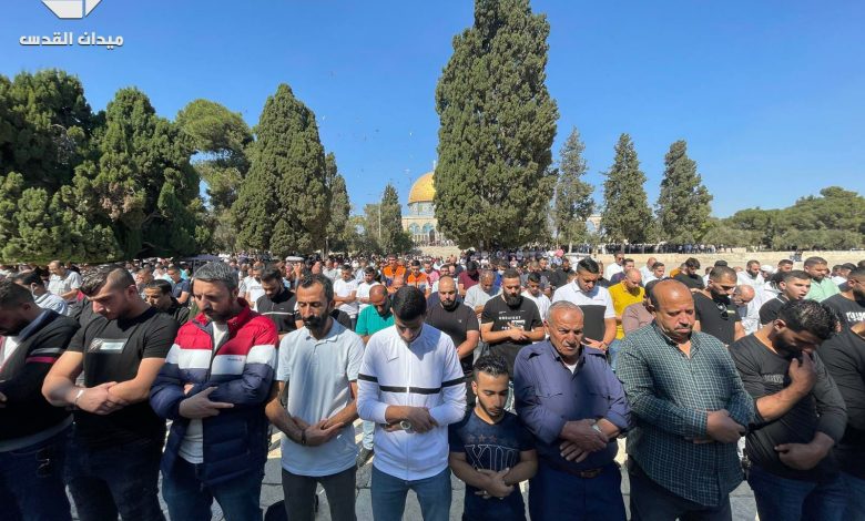 أدى الآلاف من الفلسطينيين صلاة اليوم الجمعة، في المسجد الأقصى المبارك، رغم التواجد المكثف لقوات الاحتلال الإسرائيلي على أبواب البلدة القديمة، وأبواب الأقصى.