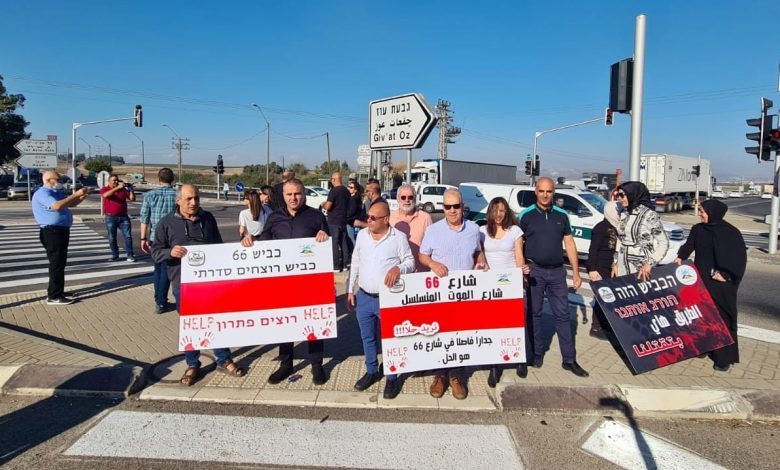 ورفع المتظاهرون شعارات كُتب عليها، “شارع 66 شارع الموت المتسلل”، “نريد جدارا فاصلا وهو الحل”، “كفى!! سبعة قتلى حتى اليوم في هذا الشارع”.
