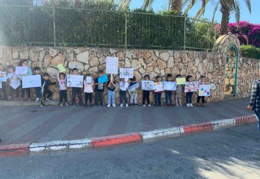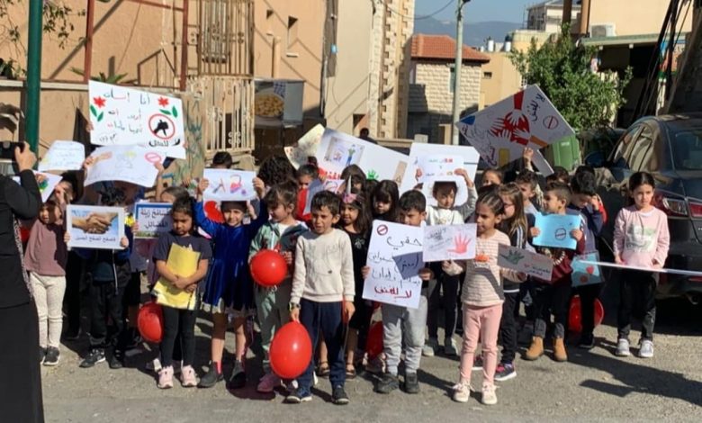 ومن ضمن الشعارات التي رفعها أطفال الروضات: (كن لطيفا… نعم للمحبّة… كفى للعنف…)