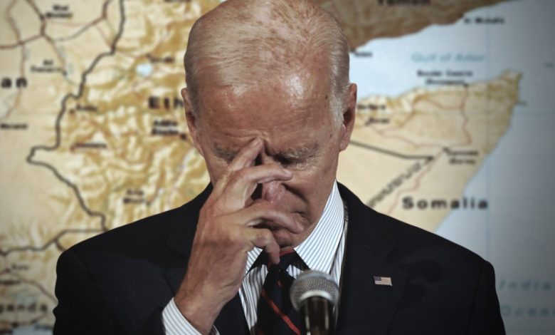 قبل أن يتولَّى بايدن منصبه، كان فريق السياسة الخارجية لديه قد اتَّخَذَ موقفاً متشدِّداً إزاء إثيوبيا، ومنذ ذلك الحين كان حازماً في الدعوة إلى وقف إطلاق النار والمساءلة والحوار السياسي واسع النطاق في حملة الحكومة الشرسة على نحوٍ متزايد ضد المتمرِّدين في إقليم تيغراي. وبينما كانت الإدارة متَّسِقةً بشكلٍ ملحوظ في رسائلها، فإنها لم تفعل شيئاً مثيراً للدهشة لإضافة استعراض القوة إلى مطالبها، رغم المخاوف المتزايدة من المجاعة التي ترعاها الدولة، وحتى الإبادة الجماعية.