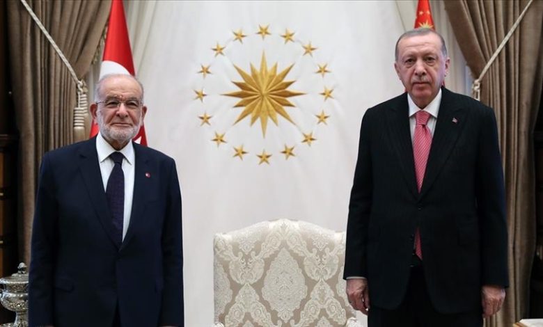 والأربعاء الماضي اجتمع أردوغان مع زعيم حزب السعادة في المجمع الرئاسي بأنقرة، حيث صرح كارامولا أوغلو على هامش الاجتماع بأنه بحث مع أردوغان العديد من القضايا الداخلية والخارجية، لافتا إلى أن الاجتماع كان ودّيا وإيجابيا للغاية، ويتفق مع أردوغان في بعض النقاط ويختلف معه بشأن بعضها الآخر.