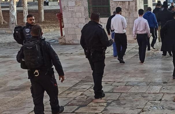 وأفاد شهود عيان، بأن 73 مستوطنا اقتحموا على شكل مجموعات استفزازية عبر باب المغاربة، ونفذوا جولات في باحاته تركزت في محيطه الشرقي.