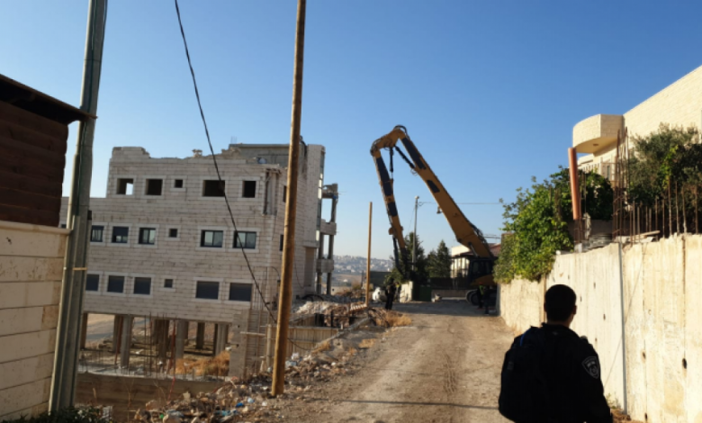 وكانت سلطات الاحتلال الإسرائيلي، قد هدمت يوم الثلاثاء الماضي 3 بنايات سكنية، في منطقة “واد الحمص” ببلدة صور باهر جنوب شرق القدس، اثنتان منها تقعان داخل الجدار الفاصل، كل بناية مكونة من طابقين، تضمان 11 شقة، منها 4 مأهولة بالسكان تأوي 20 شخصًا، فيما تقع البناية الأخرى خارج الجدار، مكونة من 4 طوابق، وتحتوي 8 شقق، بذريعة وجودها قرب الجدار.