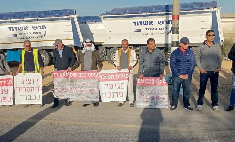 النقب: سائقو الشاحنات يتظاهرون احتجاجا على إغلاق معبر “ميتار”