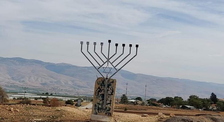 نصب مستوطنون الليلة الماضية “شمعدانات”، على مفترقات الطرق في منطقة الأغوار الشمالية.