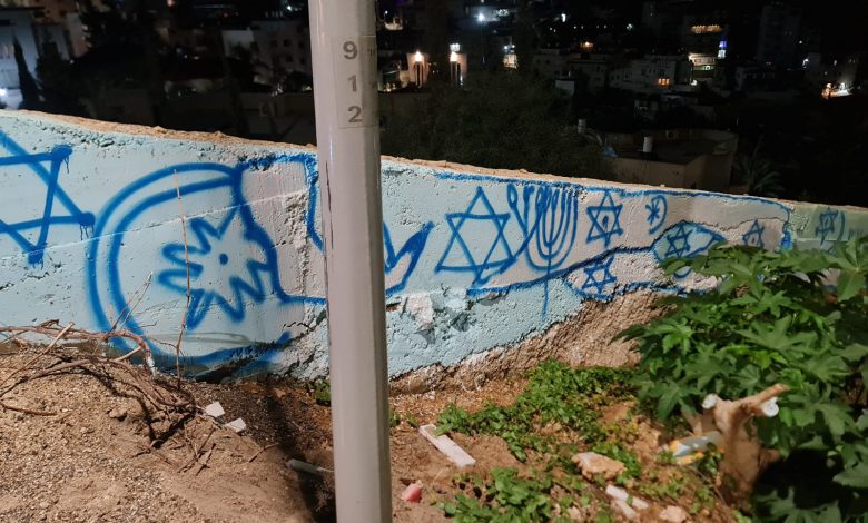 ذكرت مصادر محلية أن مجهولون أقدموا، منتصف الليلة الماضية، على رسم رسومات وخط شعارات يهودية في منطقة قطاين الشومر في مدينة أم الفحم، وذلك على درج يربط بين مناطق الحي في المدينة.