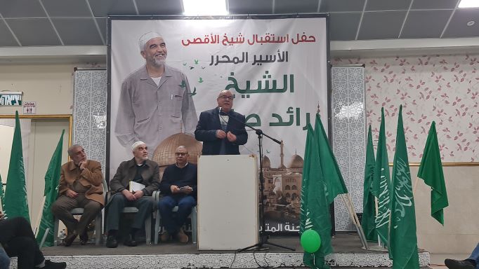 المحتفى به الأسير المحرر الشيخ رائد صلاح، رحّب بضيوف منصة الشرف وجميع الحضور. وتوجّه بعدة نصائح أو وصايا كما قال إلى الحضور وأبناء شعبنا قائلا “غدا نبدأ بإذن الله تجديد العهد مع واجباتنا التي كلّفنا بها وفق مفهوم ثوابتنا”.