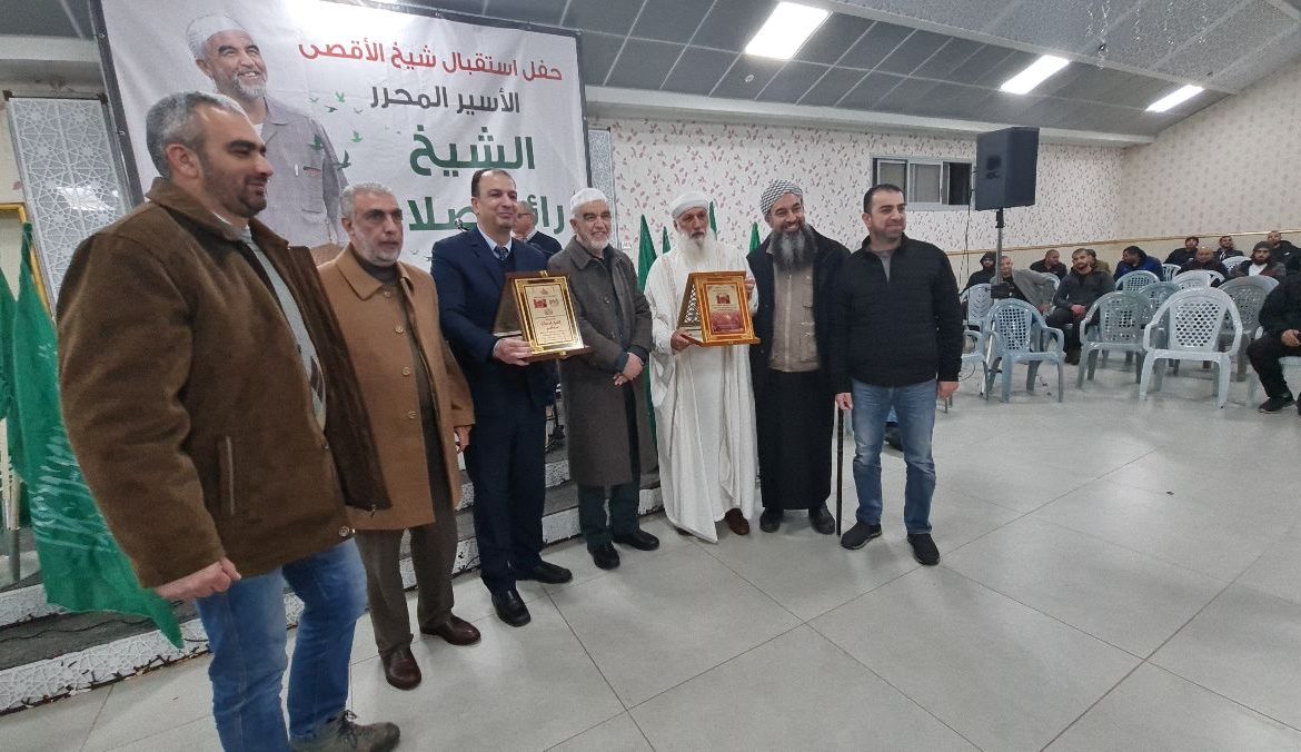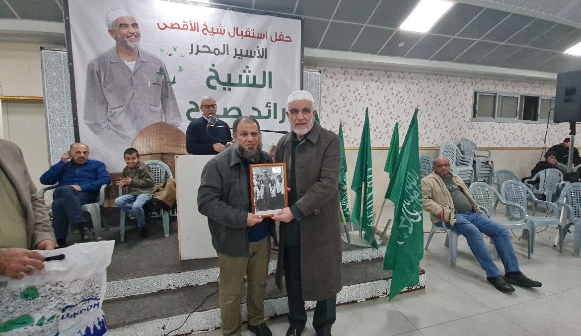 الشيخ رائد دعنا تحدث باسم وفد كبير من القدس وقال: “الحمد لله ان بيننا مثل الشيخ رائد، على بقائه في طريق الحق وعدم الإذعان. إنك الرائد والصلاح كان يمكن ان تركن إليهم شيئا قليلا لكنك ابيت ورفضت وركلت الكنيست بأقدامك، من كل حارات القدس جئنا لنقول لك نترك مكافئتك على الله تعالى”. وقدّم الوفد درعا تقديريا للشيخ رائد.
