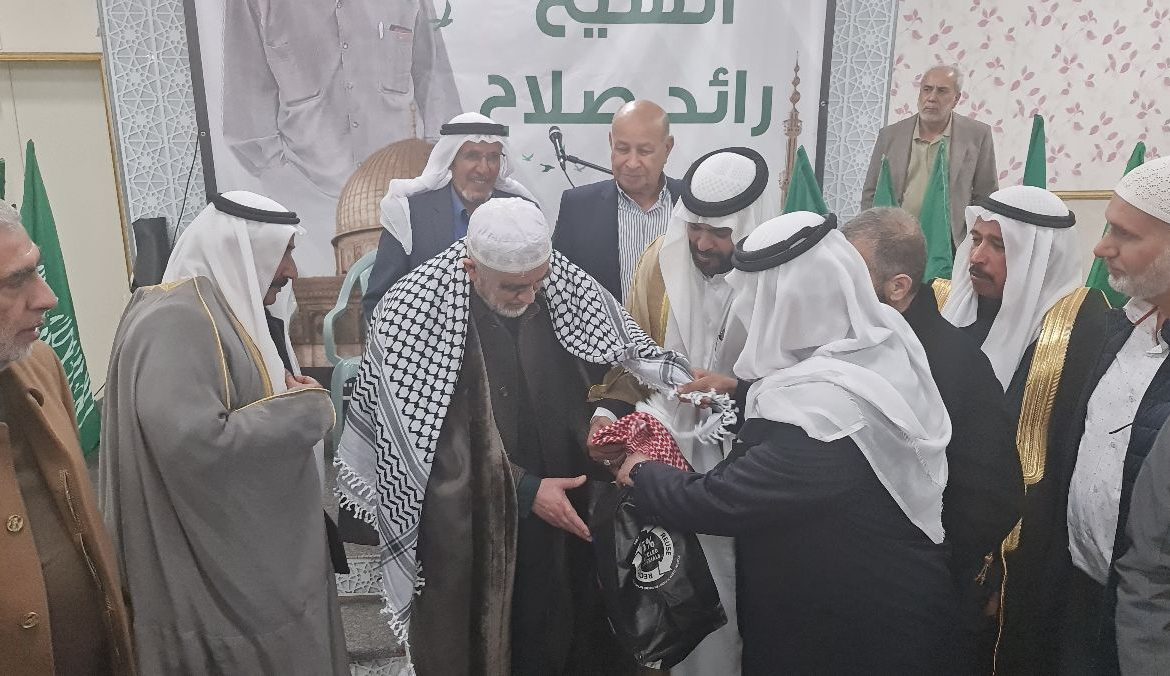 ثم كانت كلمة لوفد من النقب برئاسة السيد جبر أبو كف الرئيس السابق للمجلس الإقليمي في القرى مسلوبة الاعتراف في النقب وهنأ الشيخ مذكرا بمناقبه والحركة الإسلامية وبصماتها في النقب في كل المجالات. ثم قدّم أبو كف ووفد النقب هدية للشيخ رائد عباءة عن عباءة وكوفية فلسطينية.