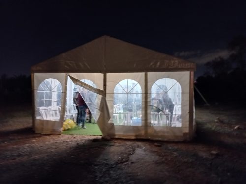 وعلم أنه طاقم هيئة متولي وقف الاستقلال مع لجنة الخيمة يجرون تحركات سريعة في هذه الأثناء لمنع هدم الخيمة.