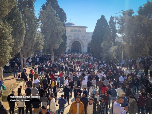 ومن جهةٍ أخرى، أدت أعدادٌ كبيرةٌ من المصلين فجر الجمعة الأولى من العام الجديد 2022، في المسجد الأقصى المبارك.