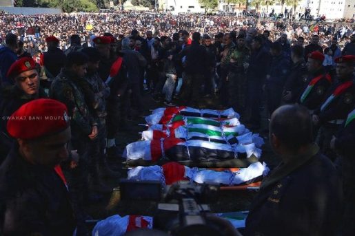 وتقدم الرئيس الفلسطيني محمود عباس بالتعزية لذوي شهداء لقمة العيش في كلمة مسجلة خلال التشييع.