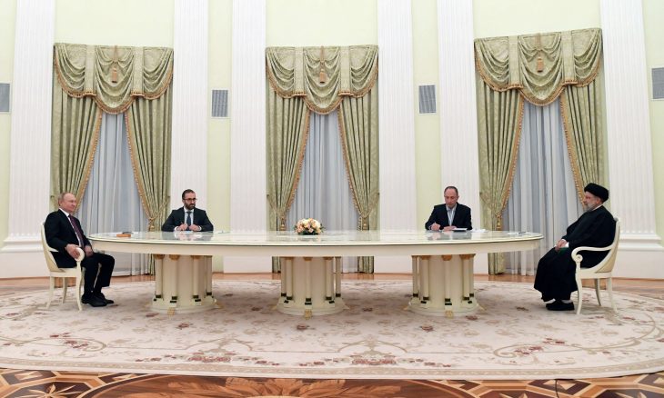 وعزز رئيسي سلطة التيار المتشدد الذي طالما انتقد الحكومة الإصلاحية لحسن روحاني واصطفافها مع الغرب، وبات أقرب من رؤية بوتين. والتقى بوتين مع رئيسي رغم جهود المسؤولين الروس لحمايته من فيروس كورونا، وسط انتشار واسع لمتحمور أوميكرون. وجلس بوتين على بعد 20 قدما من رئيسي، وقال المسؤولون الروس لاحقا إن تنظيم الكراسي اتبع قواعد النظافة المطلوبة. وقال بوتين: “لا يمكن استبدال اللقاء الشخصي بمؤتمر عبر الفيديو أو الهاتف، وحتى كهذا” مشيرا إلى الطاولة الكبيرة التي تفصل بينهما.