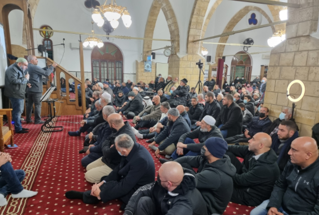 وجاء ذلك في أمسية نظمت في مسجد “حسن بيك”، شارك فيها المئات ودعت لها عائلة المرحوم أبو نجم في مدينة يافا إحياء لمسيرة نجلها القائد محمد أبو نجم الذي قُتل برصاصات غادرة بتاريخ 24/1/2021.