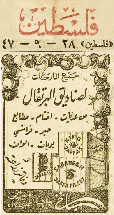 ومع زيادة أعداد المهاجرين اليهود، واندلاع حرب عام 1948، فقد سقطت مدينة يافا في أيدي العصابات الصهيونية، وتراجع الإنتاج وكذلك الأراضي المزروعة بالحمضيات بسبب ظروف الحرب وبسبب قلة الأسمدة وغلاء الزيوت اللازمة لتشغيل محركات البيارات. ولاحقا استولت التعاونيات اليهودية على مزارع البرتقال وصارت تدار من قبلها، وأصبح برتقال يافا رمزا للمؤسسة الإسرائيلية.
