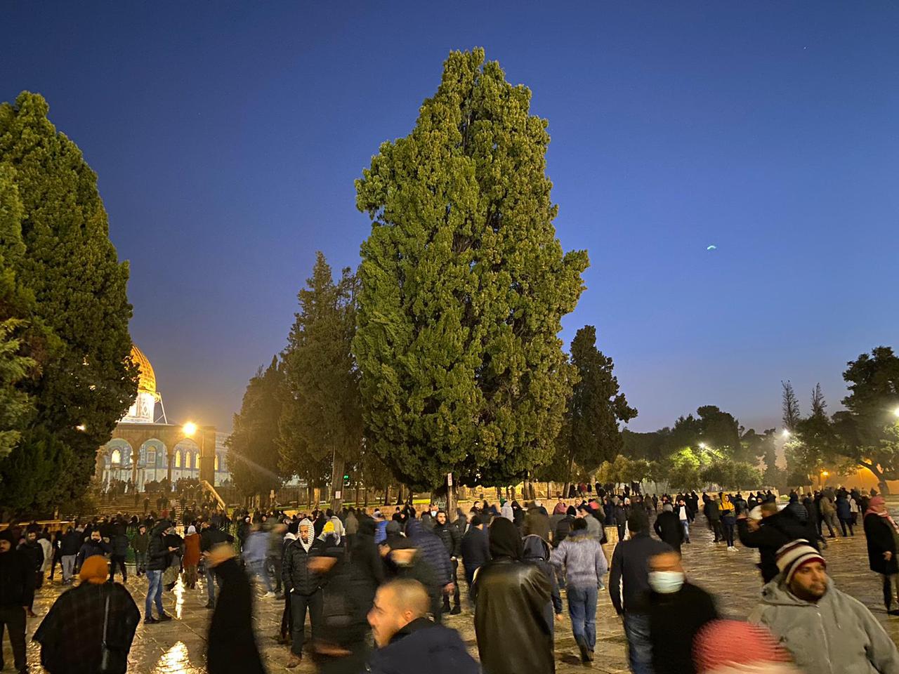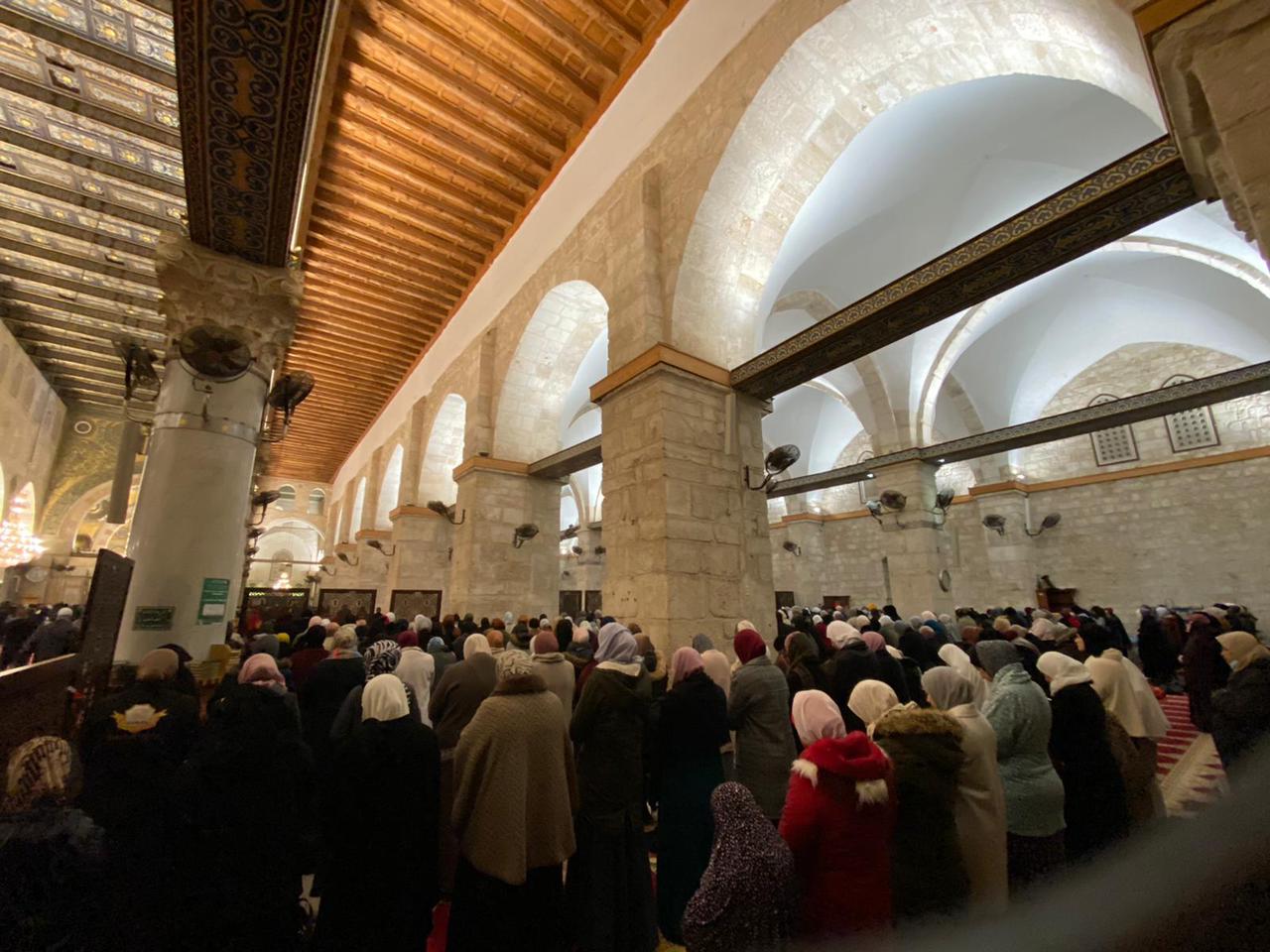 واحتشد آلاف المصلين في المسجد الأقصى المبارك، وامتلأت المصليات المسقوفة بالمصلين بينهم عائلات ضمت نساء وأطفال رغم أجواء البرد الشديد.